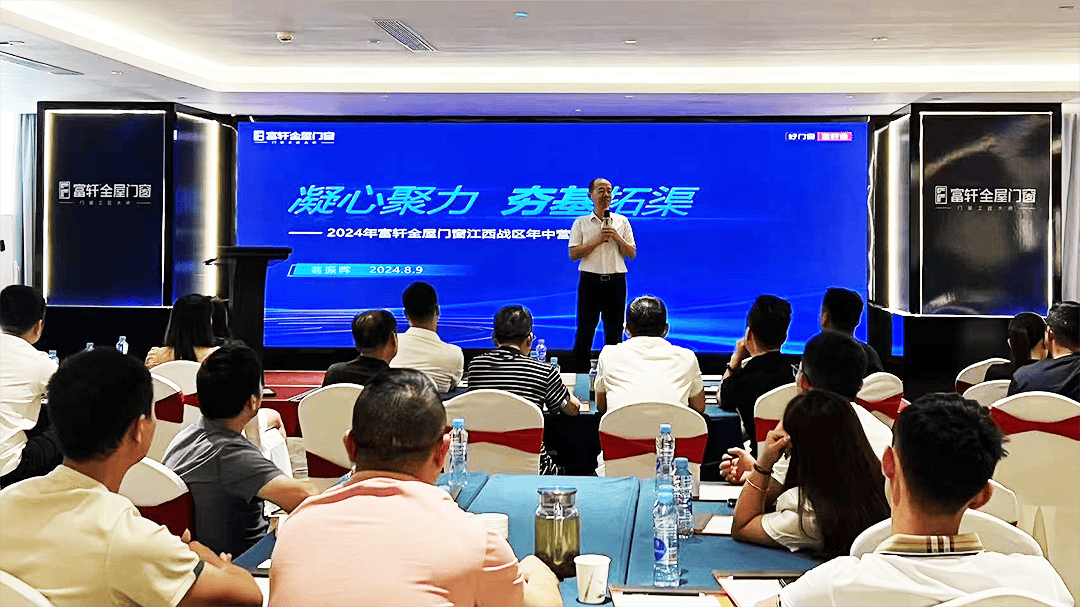 2024年8月9日,富轩全屋门窗江西战区加盟商年中变革营销峰会于上饶顺利召开,并取得圆满成功!富轩全屋门窗营销中心总经理翁总携商学院讲师团队与江西区域富轩大商精英们共聚一堂,汇聚智慧,以战略变革应对市场之变,共商门窗高效运营之道。