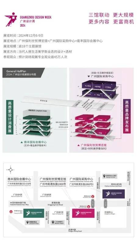 2024年12月6-9日,广州设计周以“一起”为主题,聚焦当代人居生活美学新业态的设计+选材,于广州保利世贸博览馆、广州国际采购中心、南丰国际会展中心三馆同期盛大举办。展会规模达18万㎡,汇聚全球逾1000家品牌企业,以及40+超级策展项目,共同探索设计与选材的未来趋势。