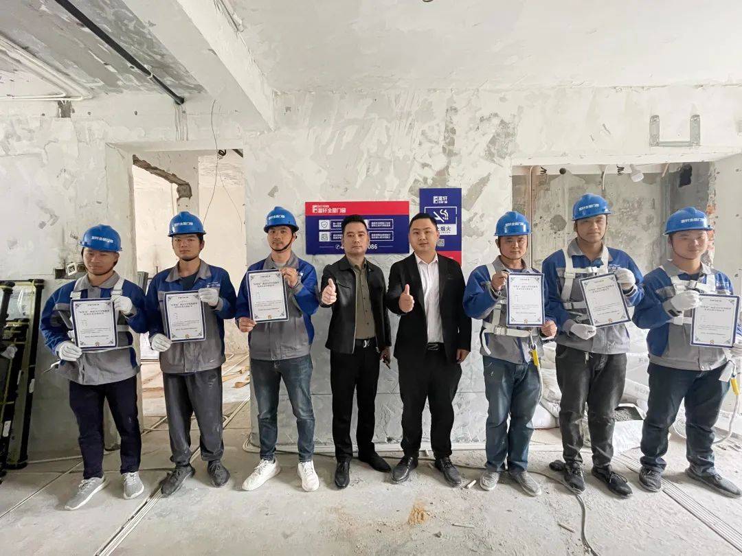 在工地现场,南京门店的工程团队出色完成考核,取得了富轩全屋门窗培训认证证书。这不仅仅是对消费者的匠心交付,同时也将成为终端门店销售的一个有力的秘密武器。