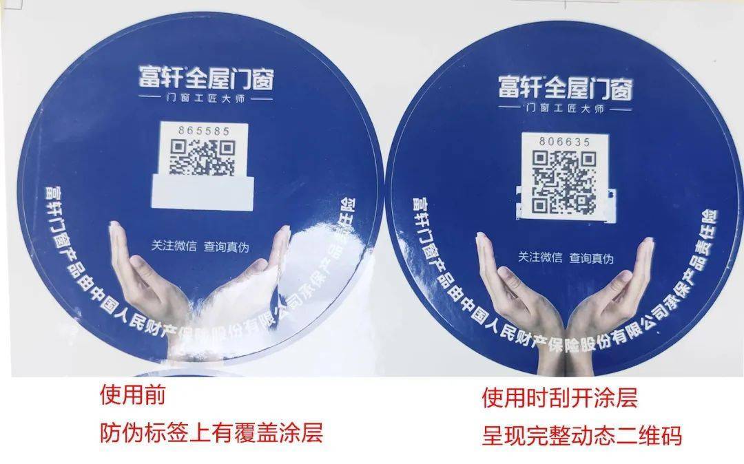富轩全屋门窗产品均贴有“正品”查询标签(目前,正品标签为印有“富轩全屋门窗 • 门窗工匠大师”、动态二维码、富轩门窗产品由中国人民财产保险股份有限公司承保产品责任险,均为官方正品查询标签。);