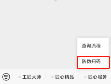 进入富轩门窗公众号,点击界面右下角“防伪查询”,再扫圆形标签中的二维码;