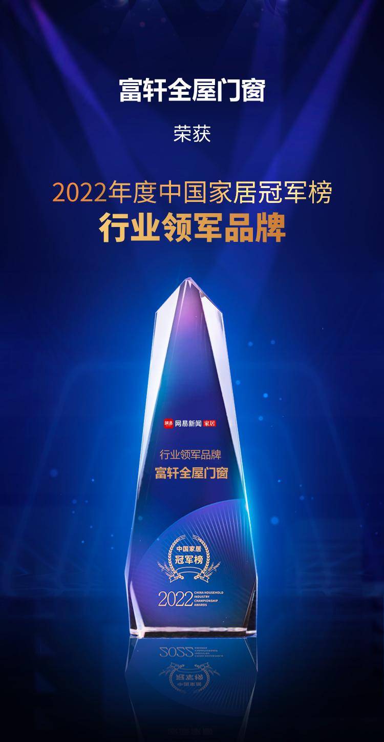 富轩全屋门窗荣获2022中国家居冠军榜“行业领军品牌”称号