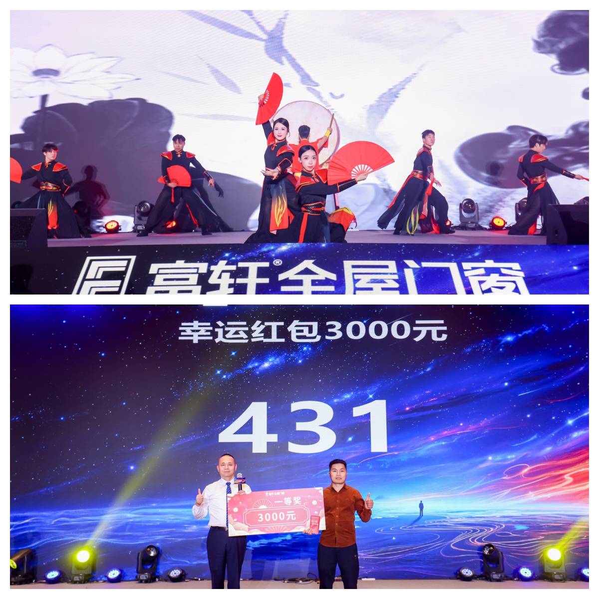 富轩全屋门窗董事长李昌安先生协同富轩品牌高管及供应链合作伙伴共同登台举杯祝酒,为2026顺利开年庆祝,同时也借酒共祝富轩全屋门窗马年一马当先,驰骋千里。