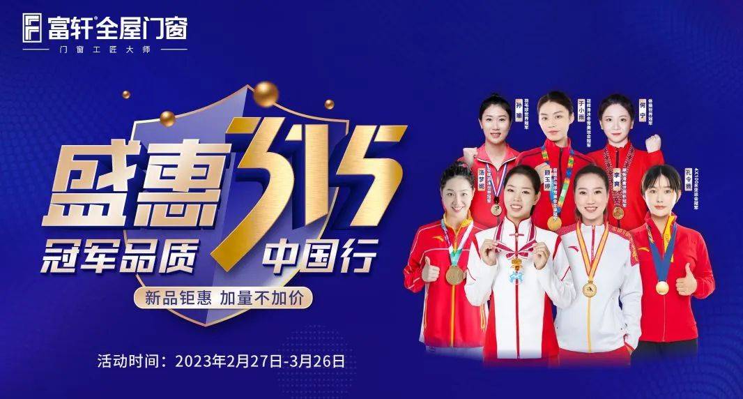 富轩全屋门窗盛惠315活动现已启动,2023年2月27-3月26日,欢迎有定制门窗需求的业主朋友进店咨询,冠军豪礼活动抽奖、新品钜惠加量不加价、关注富轩抖音号抢购抖音福利等精彩好礼等你来!