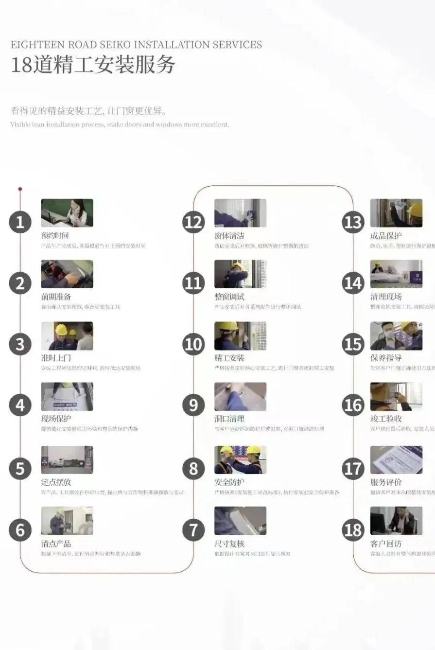 门窗安装流程更是严格执行十八道安装工序,从洞口处理、门窗固定、到密封处理等多道环节,细致确保产品与洞口严丝合缝,保障水密性与气密性,让门窗充分展现真正“实力”。