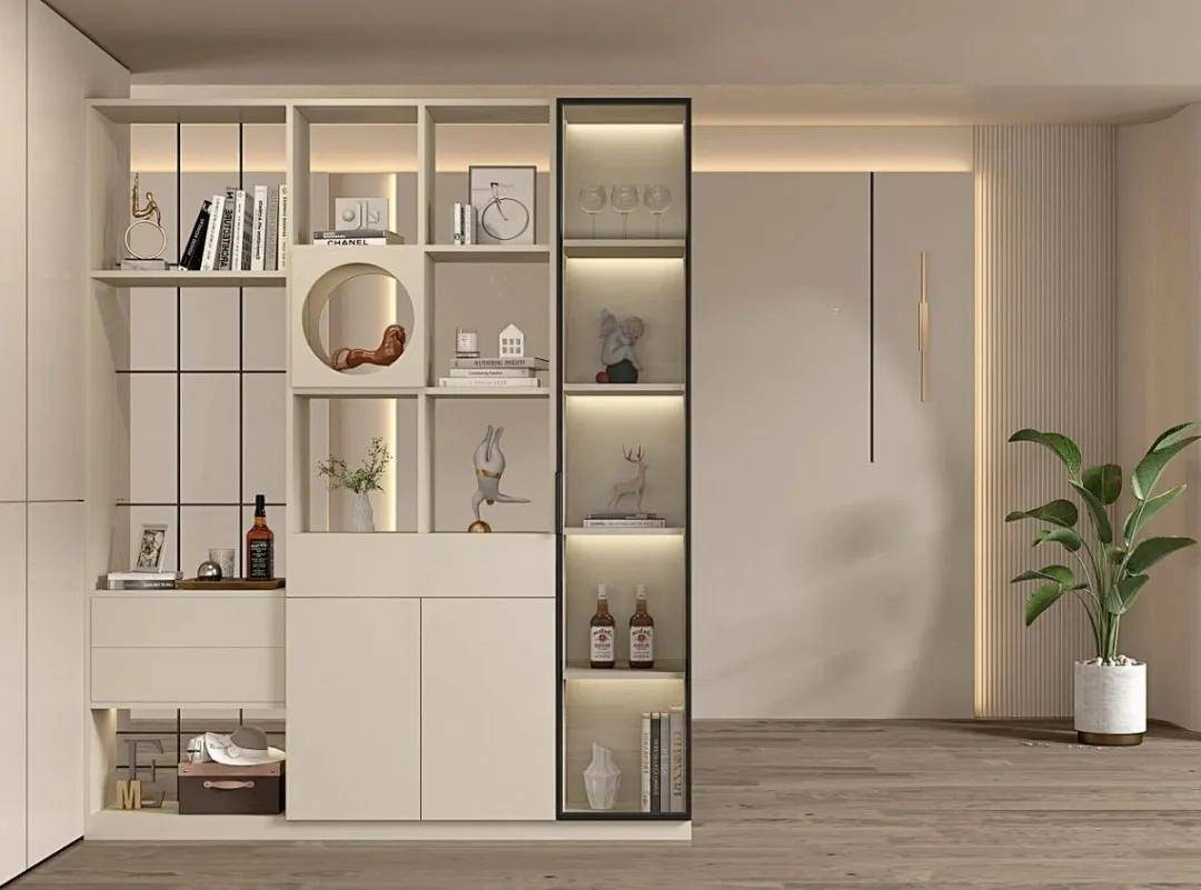 若是玄关与客厅相邻,隐私感较弱,可以增加透光不透人的玻璃进行隔断,如磨砂玻璃、长虹玻璃,若是想要更灵活,增加可移动隔断,日常采光不受限,也保护隐私,居住更安心舒适。