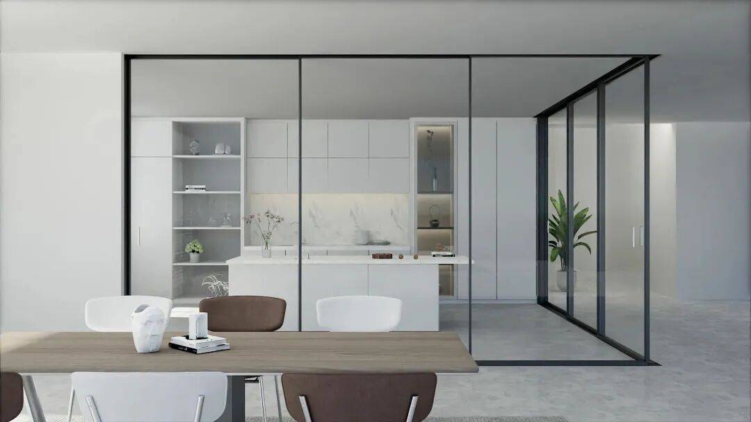 富轩全屋门窗富隐MT16百变推拉门轻松将厨房与客厅隔断,左右推拉启闭,不占用过多空间,烹饪时轻轻一关,厨房与客厅、餐厅瞬间分区,互不干扰。