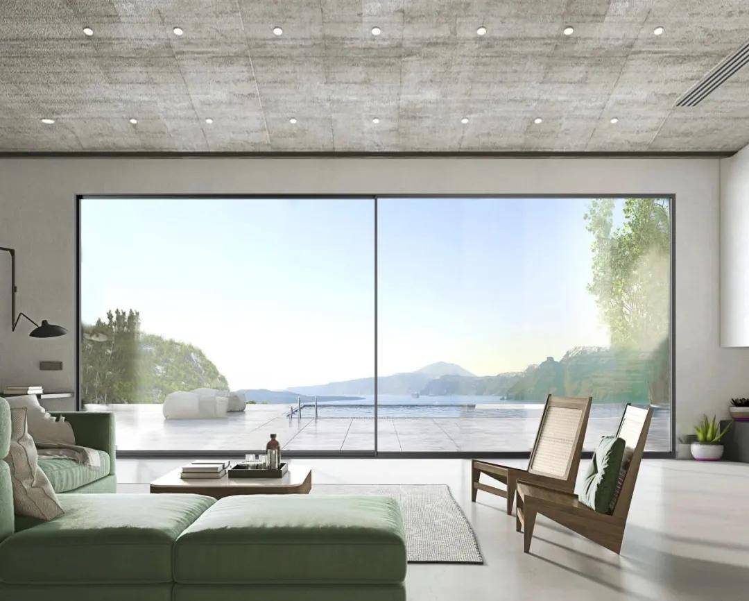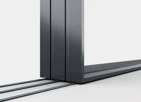 富轩全屋门窗推拉门门扇采用微缝设计,采用隐藏滑轮斜面结构设计,门窗离轨道/地面仅5mm,微缝视面,更加简约美观。
